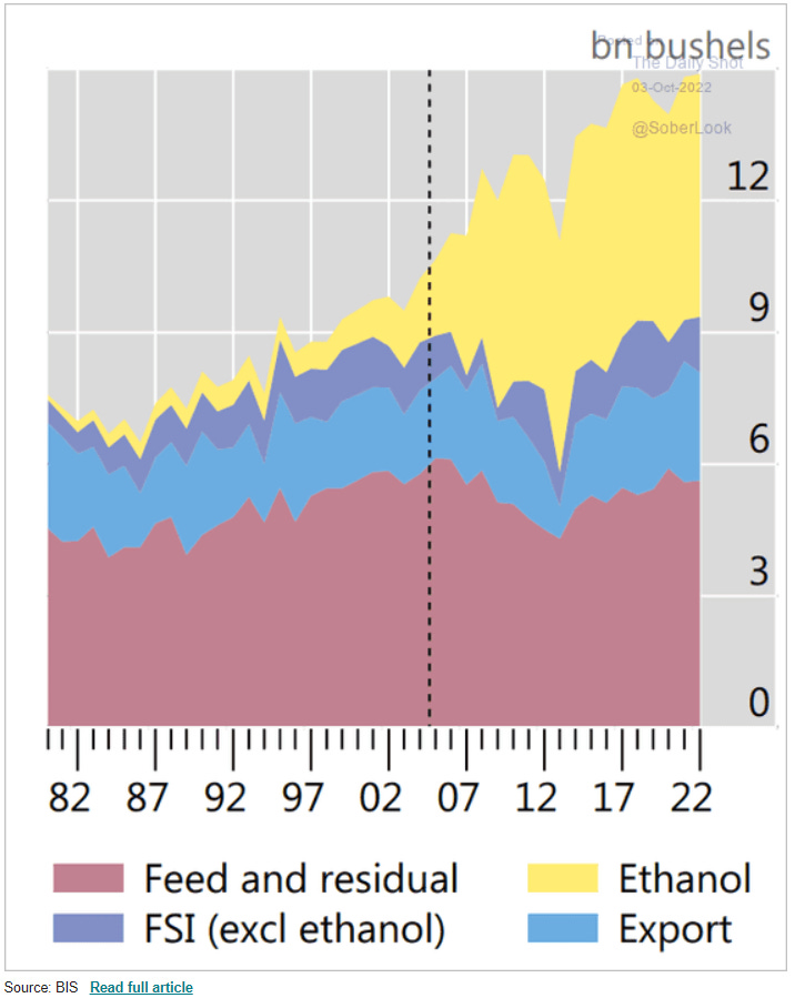 We grow a lot of corn, even here in northwestern New Jersey, but it doesn’t all go to feed people. Most goes into animal feed, but more of it lately has been used for producing ethanol since the government has raised its limit as a fuel additive to 15%. Weather has been favorable, and yields have been good, but this will change in future seasons as fertilizer and pesticides have become many times more expensive. At some point, global food shortages are going to create tension over the use of corn. Our government subsidizes ethanol production, and it effectively lowers the price of gasoline at the pump, but the day is coming when the corn is needed more for food — this should reduce government subsidies but will raise gasoline prices. I’m presuming that corn for human consumption (as opposed to cattle feed) is the same as that used for ethanol - if not, then plantings will have to change.