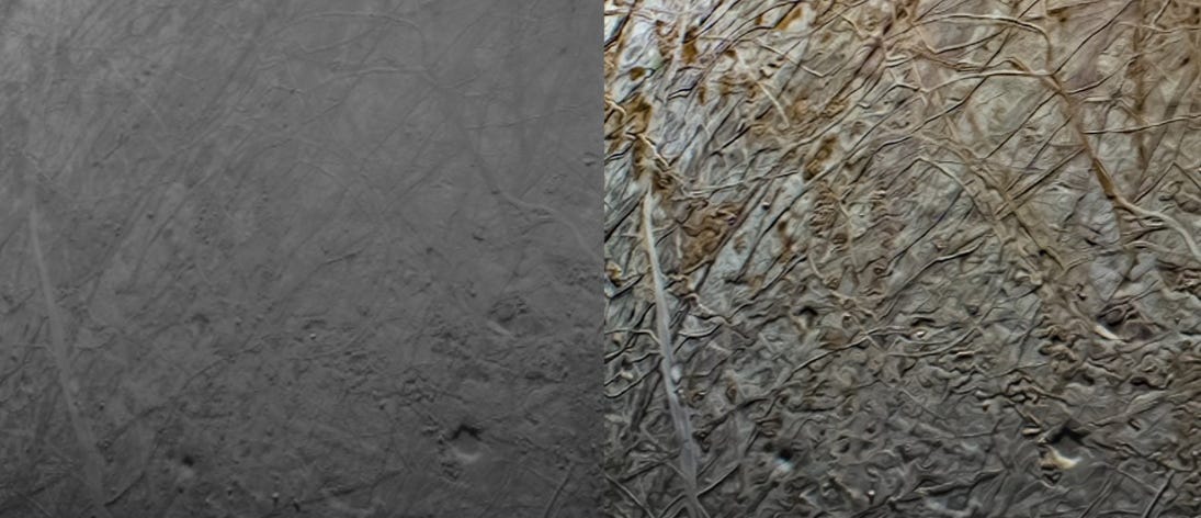 NASA, ESA, and other space agencies take incredible images in space. For years, they have been making the full resolution RAW image files available for anyone to download. The picture below shows why. “Citizen scientists” have incredible image processing and data visualization skills, and the scientific community has opened itself up to using them. Giving everyone access to master data lets them apply their own special skills and techniques. Björn Jónsson saw Juno’s master image of Europa (on the left) and used his own special algorithms to enhance color and contrast to produce and share the image on the right.